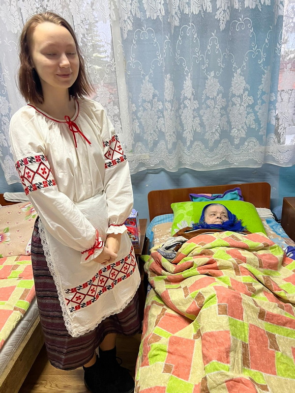 От всей души проживающих в круглосуточном отделении пенсионеров и инвалидов пришли поздравить с Рождественскими праздниками: ветераны педагогического труда Козлова Татьяна и Лапин Сергей, руководитель по военно-патриотическому воспитанию СШ №1 Вечорко Николай, учащиеся СШ №1, заведующая отделением дневного пребывания для граждан пожилого возраста и солистка вокальной группы «Истоки» отделения Курилович Елена. Ведь Рождество — это праздник, который вдохновляет на то, чтобы сделать жизнь окружающих радостнее, дарит надежду на хорошее и веру в чудеса. Организаторы мероприятия принесли с собой частичку праздничного волшебства в виде подарков (средств гигиены и наборов конфет), поделились душевной теплотой и добротой.